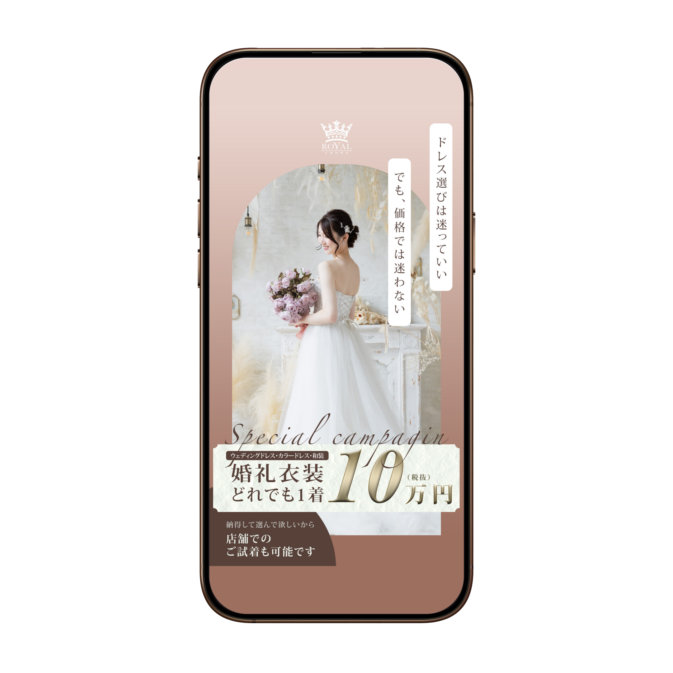 30代後半から40代女性に向けて、肌の透明感を感じられる写真を配置。初回トライアルでお得なキャンペーンではありますが、一人一人の肌に合わせたオーダーメイド治療というイメージに合わせ高級感が出るようフォントを選びました。